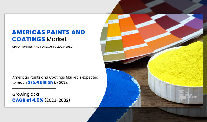 WILMINGTON, DE, UNITED STATES, October 9, 2025 /EINPresswire.com/ -- Allied Market Research published a report, titled, “Americas Paints and Coatings Market By Resin Type (Acrylic, Alkyd, Epoxy, Polyester, Vinyl, and Others), By Product Type (Waterborne Coatings, Solvent-borne Coatings, Powder Coatings, and Others), By Application (Coil and Can Coatings, Automotive Car Refinishing, Automotive Parts (OEM Coatings), Wood Coatings, Industrial Coatings, Architectural Coatings, Marine Protective Coatings, and, Others): Americas Opportunity Analysis And Industry Forecast, 2023-2032". According to the report, the Americas paints and coatings market was valued at $51.3 billion in 2022, and is projected to reach $75.4 billion by 2032, growing at a CAGR of 4.0% from 2023 to 2032.
